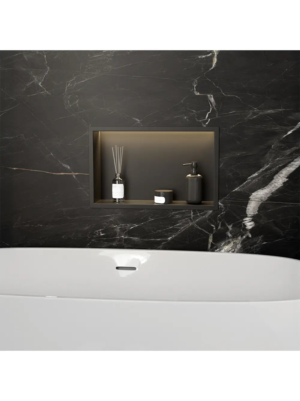 Polița încastrată pentru baie cu iluminare LED integrată, de 12 W emite o lumină caldă și plăcută, care adaugă un caracter atmosferic interiorului și crește confortul zilnic. Montajul încastrat permite obținerea unui efect minimalist și modern, iar polița oferă un spațiu convenabil pentru depozitarea cosmeticelor și accesoriilor de baie. Este o soluție ideală pentru duș, deasupra căzii sau într-o altă zonă a băii.