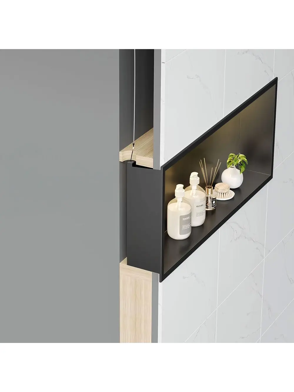 Transformă baia într-un spațiu modern, funcțional și spectaculos cu Raftul încastrat în perete cu LED, 30x45 cm, culoare negru mat – model Black , un element de design perfect pentru băi contemporane, minimaliste sau industriale. Conceput pentru a îmbina estetica premium cu utilitatea de zi cu zi, acest raft oferă o soluție elegantă pentru depozitare, integrând tehnologia LED pentru a crea o atmosferă ambientală subtilă și rafinată.