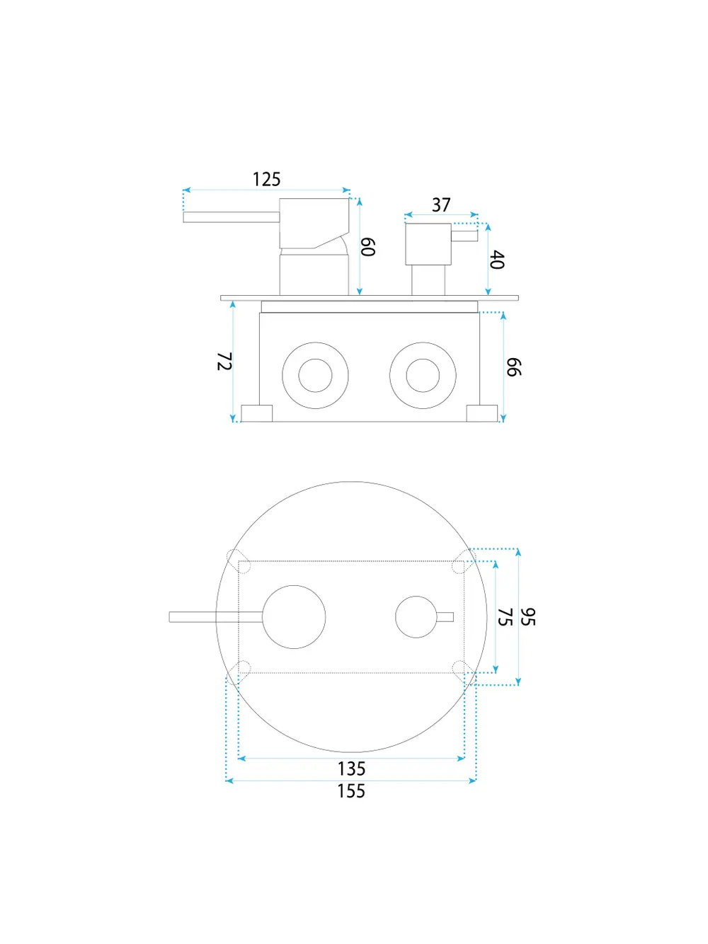 • Baterie încastrată cu manetă unică de reglare a temperaturii și presiunii;