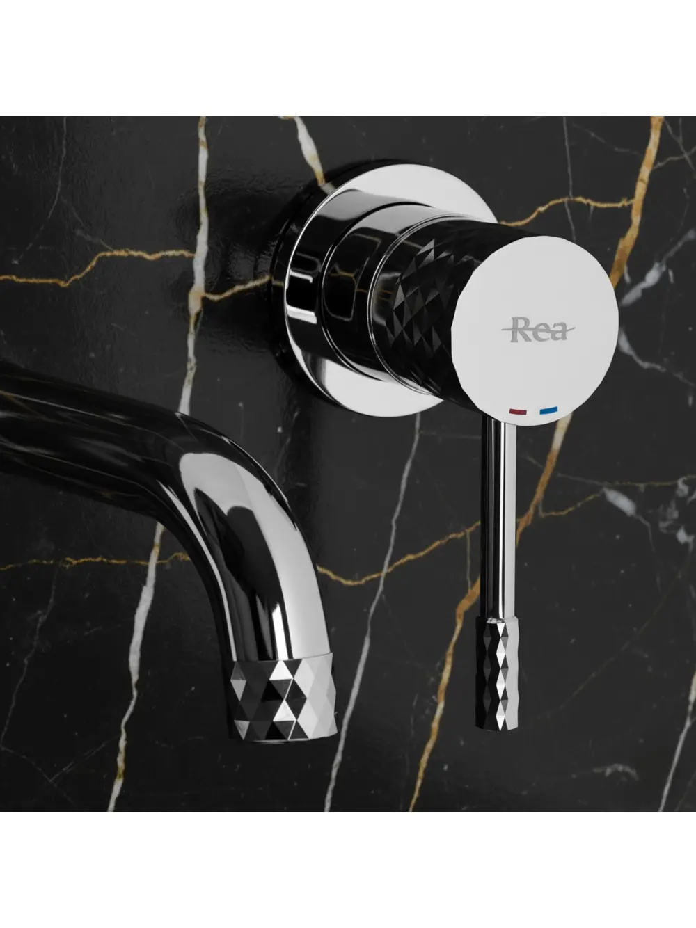 👉 Un aspect coerent, pentru a combina acest model cu un set de duș încastrat Lungo Diamond Chrome – Rea și un lavoar pe blat Royal White – Rea, pentru un contrast elegant între luciul metalic și albul ceramicii.