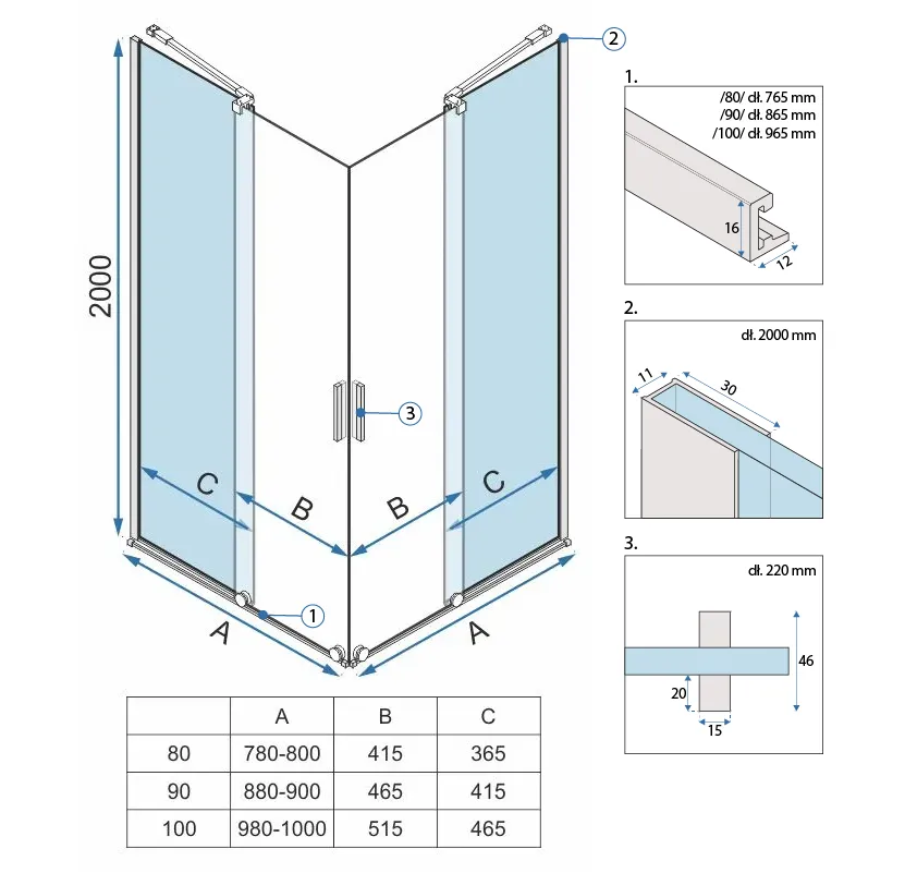 Cabină de duș culisantă de colț mărime 80x80 cm finisaj auriu periat sticlă securizată de 6 mm model Montana Double Gold Brush