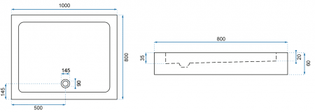 Cădiță duș mărime 80x100 cm culoare alb lucios formă dreptunghiulară din acril sanitar model Savoy White