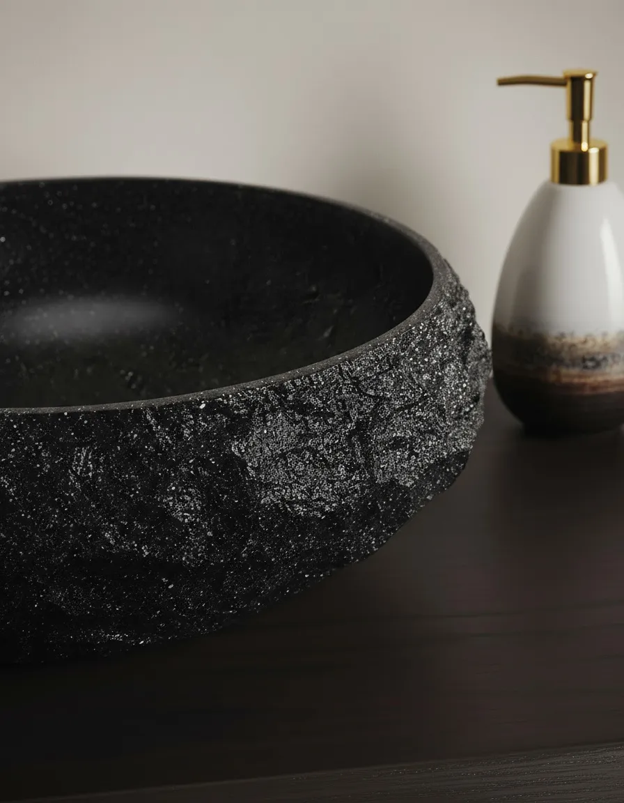 Lavoarul Mika Black este un model pe blat, ceea ce înseamnă că montajul este rapid și curat, fără lucrări complicate. Poate fi instalat pe o varietate de blaturi – din lemn, marmură, granit sau compozit – permițând libertate totală în personalizarea designului băii. Acest tip de montaj oferă, de asemenea, un avantaj practic: spațiul de sub blat poate fi utilizat eficient pentru depozitare, păstrând baia aerisită și bine organizată.