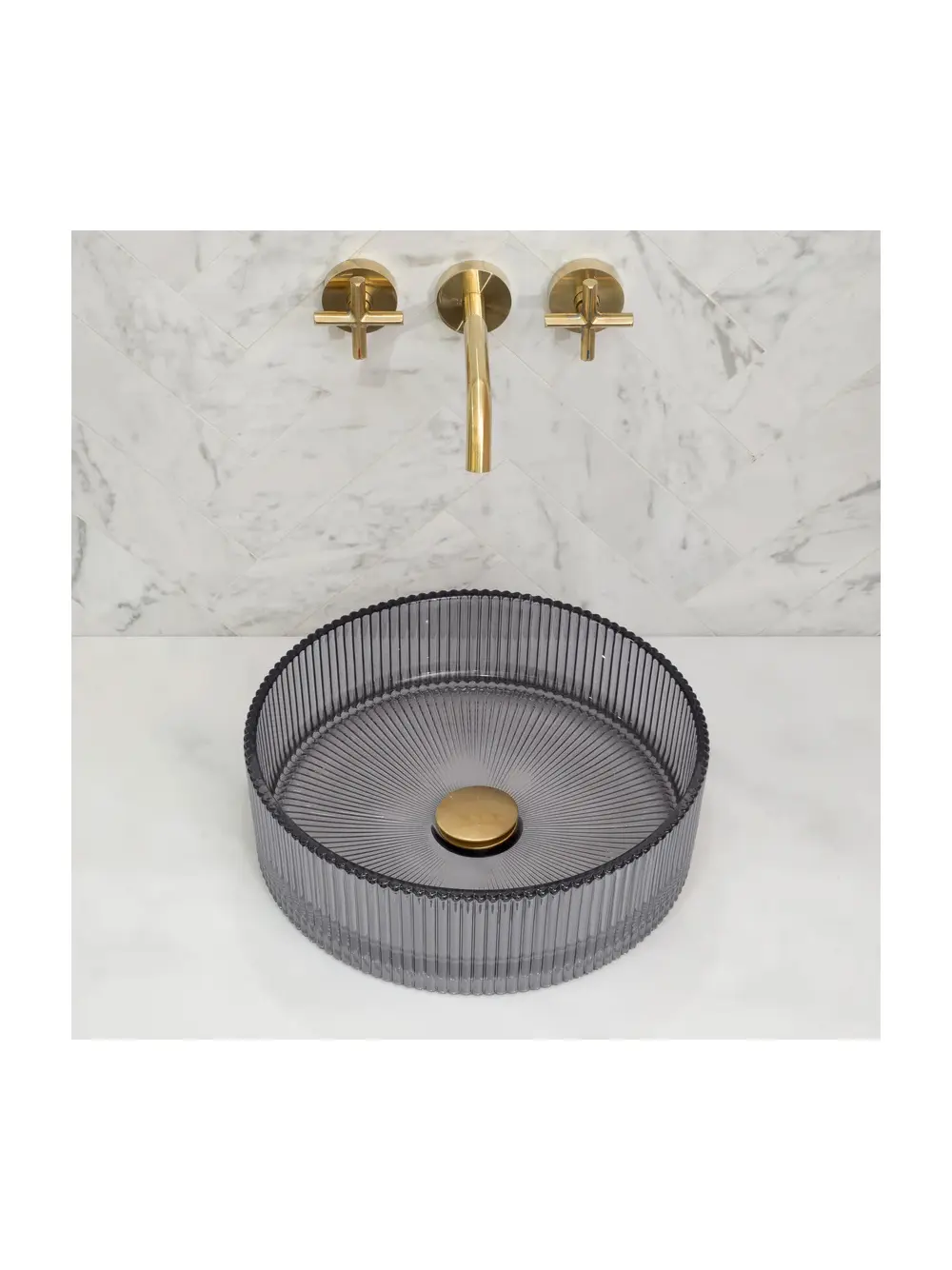 Lavoarul pe blat Ingrid Gray se remarcă prin forma sa rotundă , ce aduce un sentiment de echilibru și armonie vizuală. Suprafața din sticlă gri transparentă adaugă un efect modern și rafinat, oferind o senzație de profunzime și lumină. Nuanța gri conferă sobrietate și eleganță, fiind perfectă pentru combinații cu blaturi din lemn natural, marmură albă sau piatră compozită.