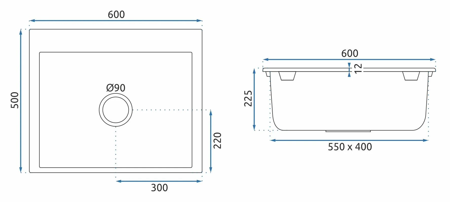 Rea Chiuvetă bucătărie granit formă dreptunghiulară lungime 60 cm culoare neagră model Lin Black