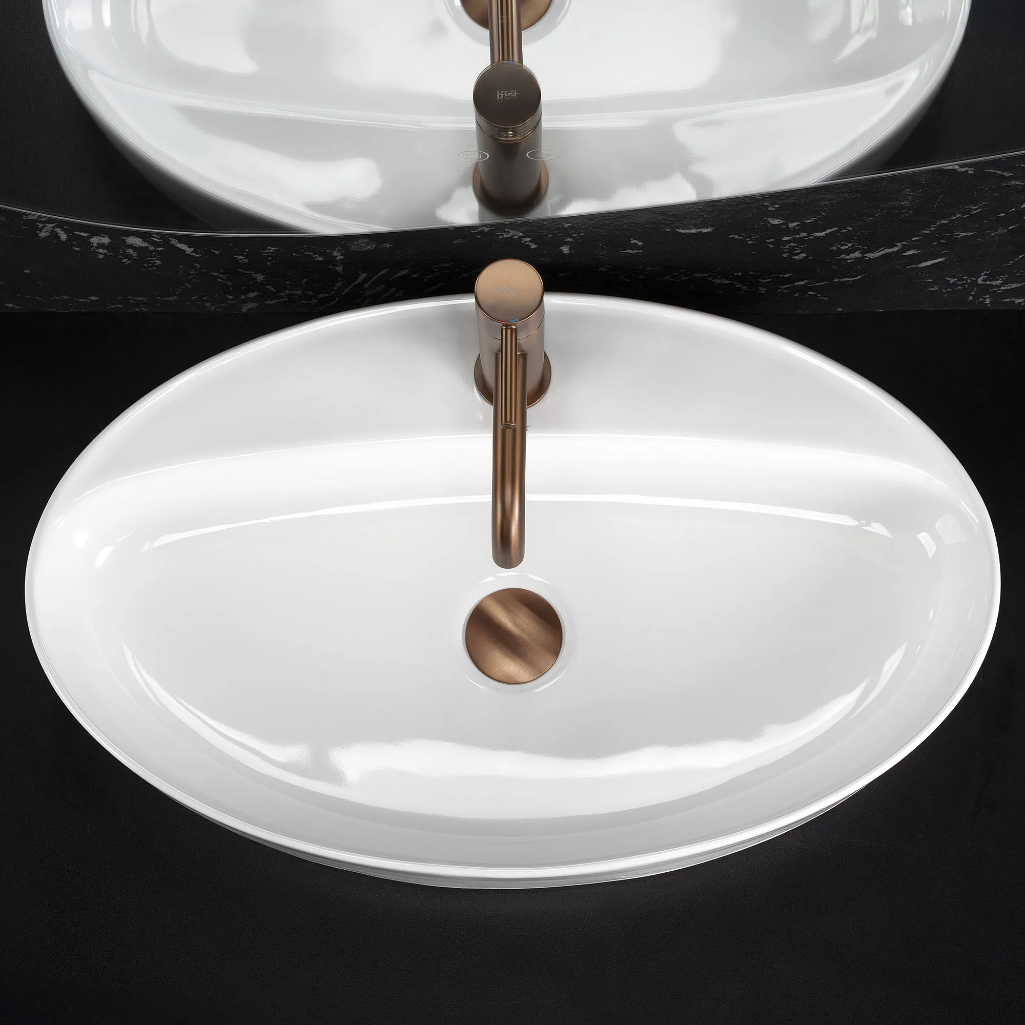 Forma ovală a lavoarului adaugă un plus de fluiditate și armonie spațiului. Spre deosebire de modelele tradiționale, lavoarul pe blat Nastasia are un aspect minimalist, cu linii curate, care se integrează perfect în băile moderne, dar și în cele cu design clasic.