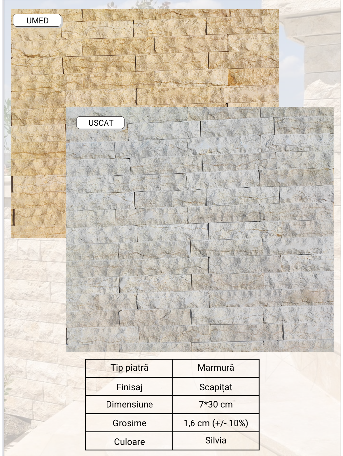Versatilitate în utilizare: Ideală pentru placări interioare și exterioare, inclusiv fațade, socluri, garduri și pereți decorativi.