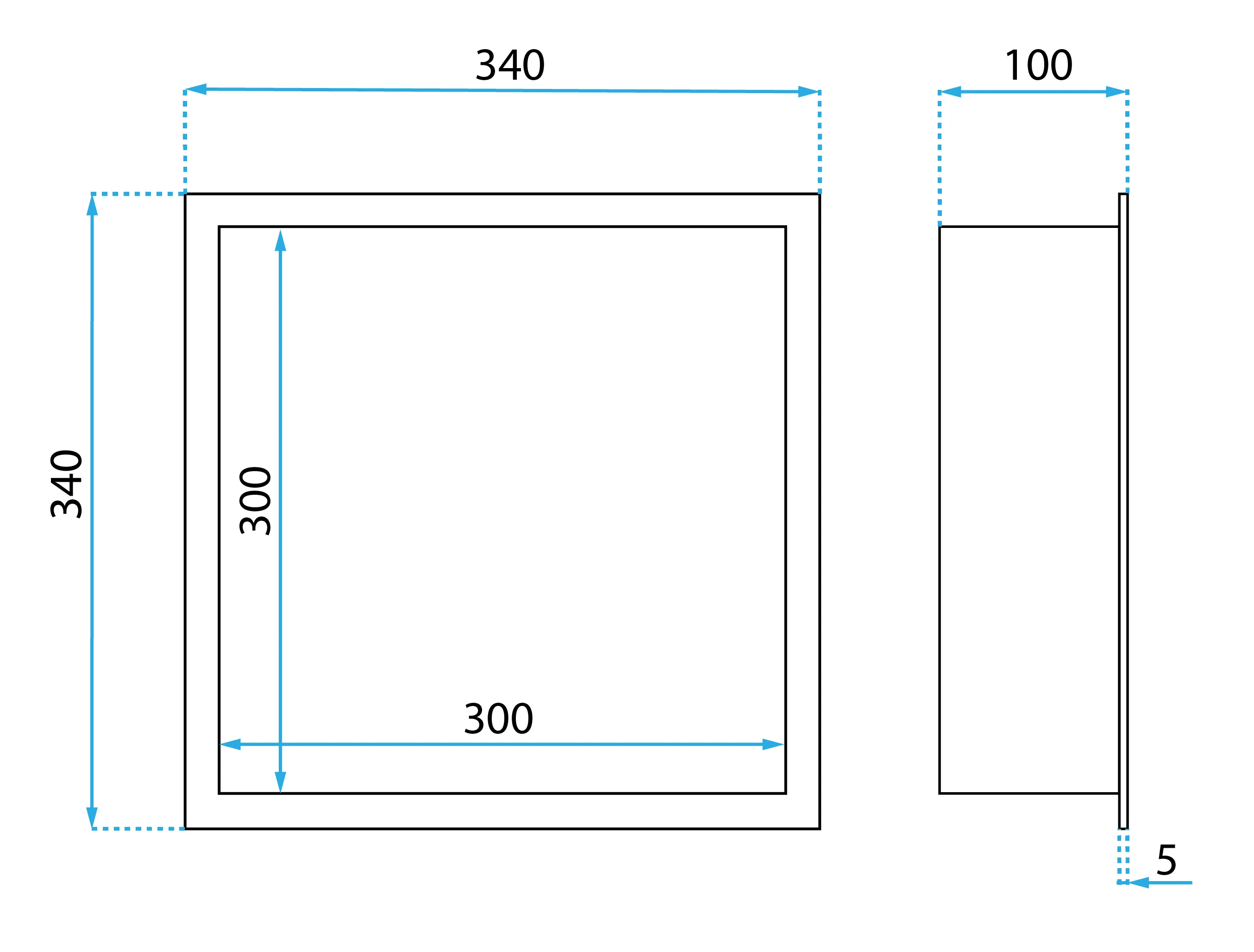 Raft baie încastrat în perete mărime 30x30 cm culoare negru mat model pătrat Black Matt