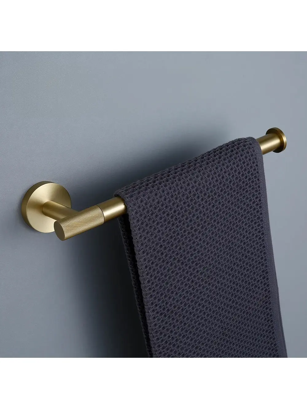 Acest suport de prosop este ideal pentru băi cu design contemporan, minimal sau industrial-chic: profilurile simple, finisajul auriu periat și montajul pe perete îl fac ușor de integrat.